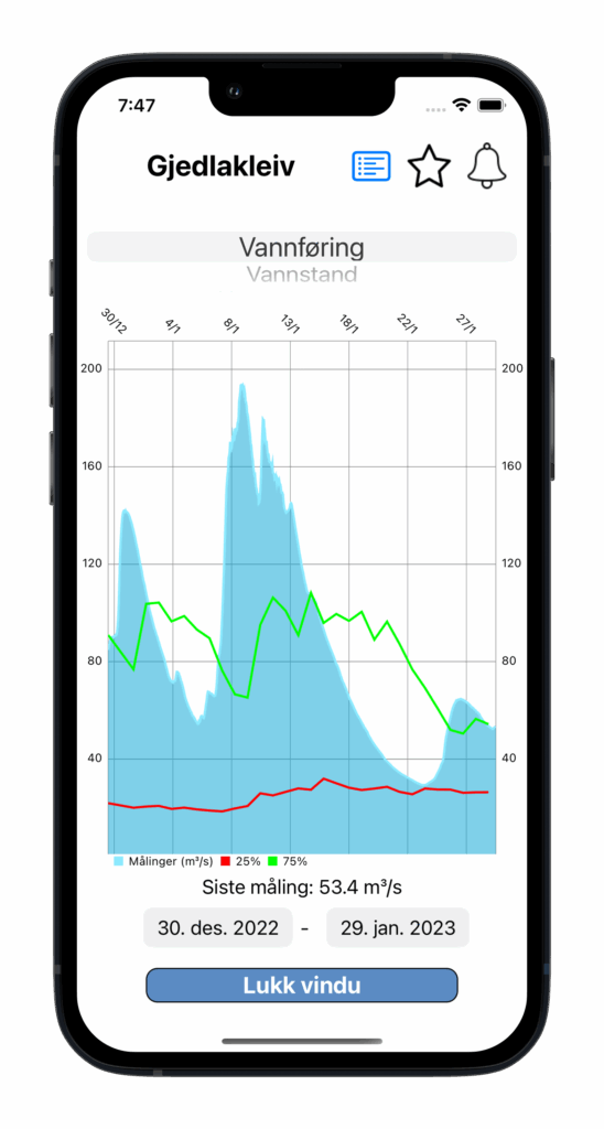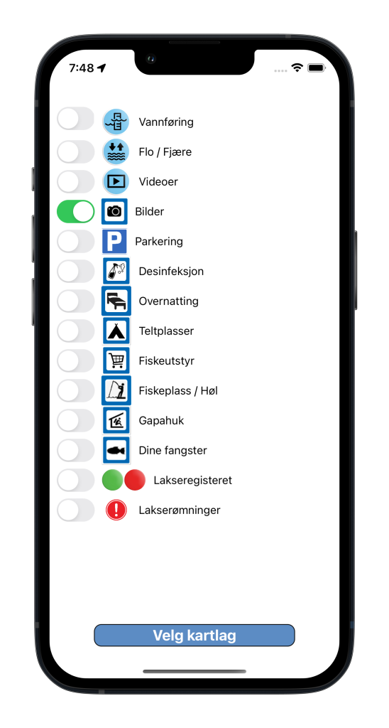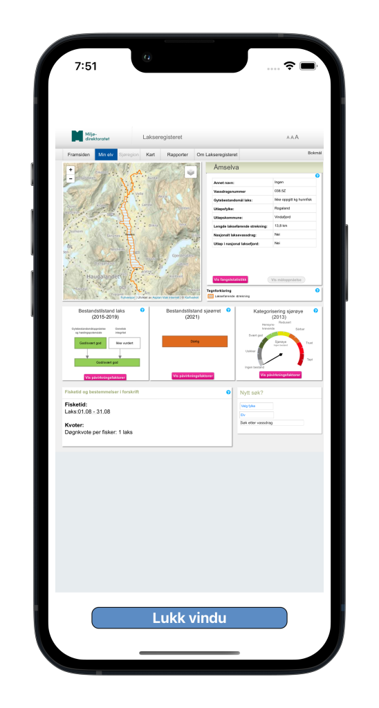 Den har utrolig mange muligheter, du kan se vannstand og hvor du kan parkere! Det er også valg av alt du kan trenge under eller ved planlegging av fisketuren din, (Se noen bildeeksempler under her)